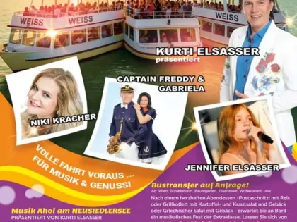 Jetzt bestellen! Musik Ahoi am NEUSIEDLERSEE – PRÄSENTIERT VON KURTI ELSASSERSteigen Sie ein und genießen Sie einen Abend voller Musi...